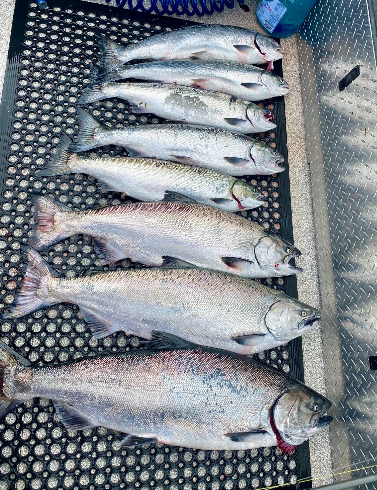 Keep an eye on that rod! It wont take long for an aggressive takedown once we land on giant schools of feeding coho salmon. Flashers with spinners as well as bait are preferred methods to grab the attention of these aggressive feeding fish.